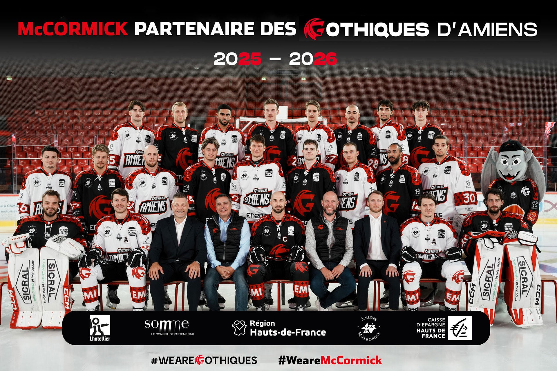 C’est une véritable fierté de poursuivre l’aventure Gothiques ! L’équipe picarde de hockey sur glace sort d’une belle saison en ligue Magnus et entame aujourd’hui une nouvelle saison pleine de promesses, sur laquelle McCormick sera de nouveau un sponsor de premier ordre avec la volonté d’accompagner l’équipe vers les sommets !