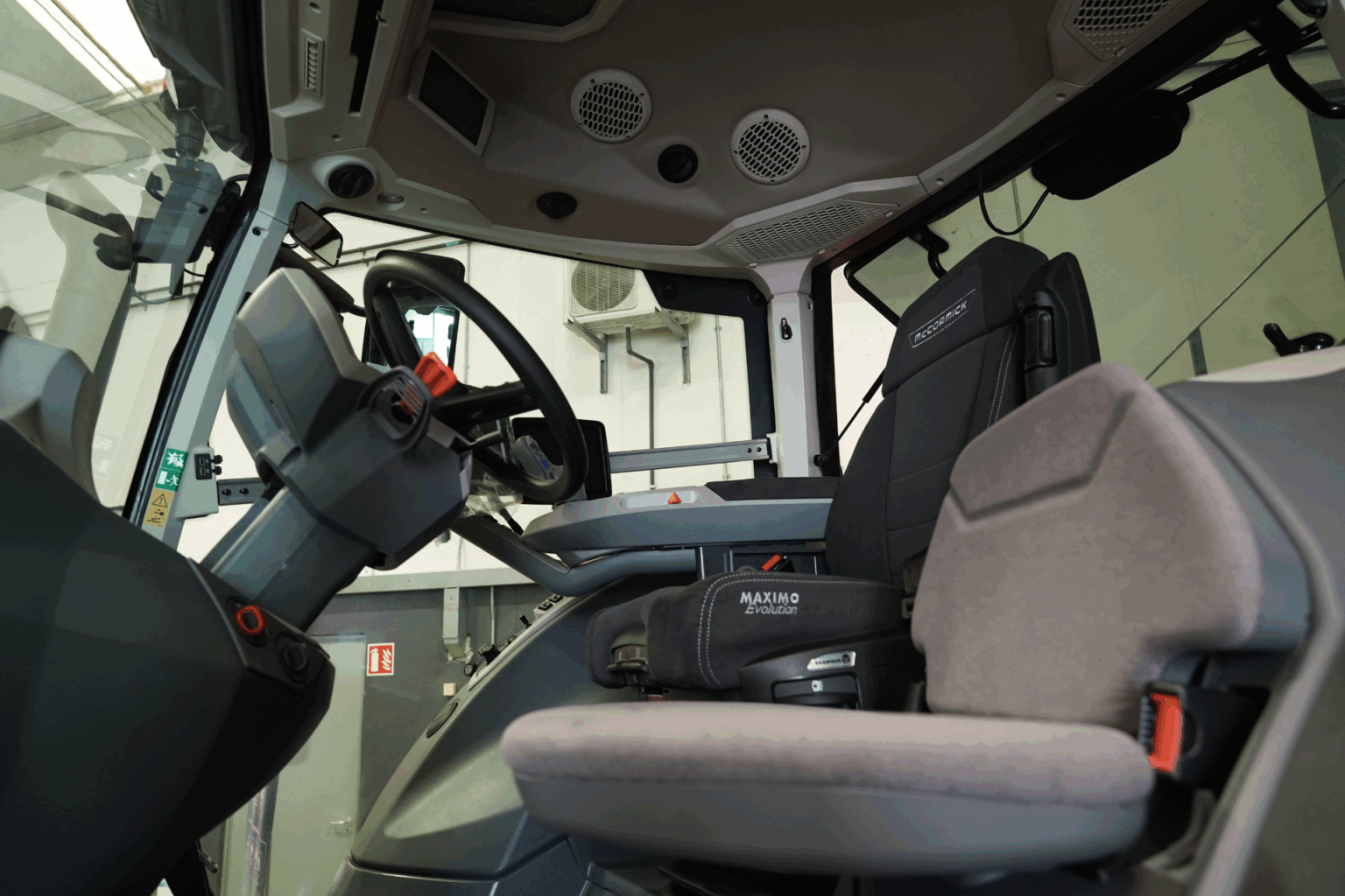 The roof includes a transparent hatch to monitor high front-loader movements without straining, while the rear window opens up to 75°, which provides greater visibility of towed implements. A high-efficiency carbon filter system ensures operator safety against solid, liquid, or gaseous contaminants, which has earned the McCormick Clever Cab a Class 2 filtration rating.