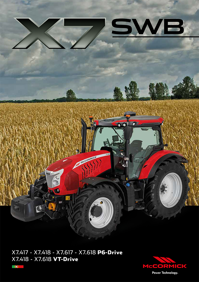 A gama X7 SWB – Short Wheelbase é um concentrado de Desempenho, Versatilidade e Conforto. O X7 SWB foi concebido para quem procura um trator mais ágil e versátil do que o seu “irmão” de passo longo, ideal para as operações de primavera e outono, onde o peso é determinante, sobretudo em solos húmidos. Clever Cab: mais espaço e maior superfície envidraçada. Banco pneumático, giratório e climatizado. Direção eletrónica. Isolamento acústico: apenas 66 dBA. Monitor tátil de 12”. Rádio Alpine DAB+. 20 faróis Full LED reguláveis. Motores FPT N45 ou N67, Stage V: 4 ou 6 cilindros, até 175 cv.